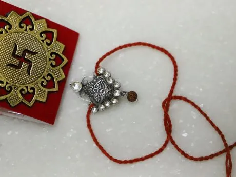 925 Silver Royal Kundan Rakhi with Rudraksha