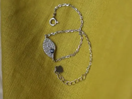925 Sterling Silver Evil Eye Rakhi Chain Bracelet with zercons