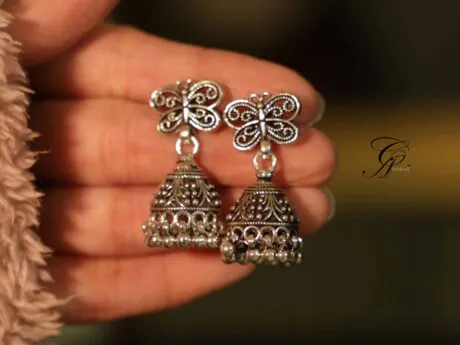 Antique Butterfly Charm Jhumki in 92.5 Silver