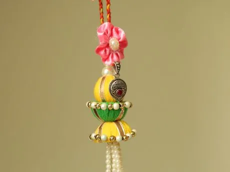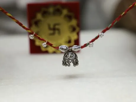 Lumba Rakhi in Braided Thread with 925 Silver Jhumki Hanging